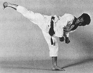 Ushiro geri (con giro). Desde zenkutsu dachi acercamos el pie atrasado y adelantando sobrepasando su posición a la vez que giramos para volvemos de espaldas, a continuación elevamos la rodilla de aquél y la estiramos atrás atacando y manteniendo las mismas consideraciones anteriores.